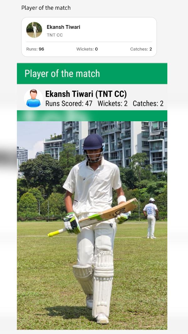 c Amin A b Ekansh T | 12 | 7 | 1 | 1 | 171.43 | |